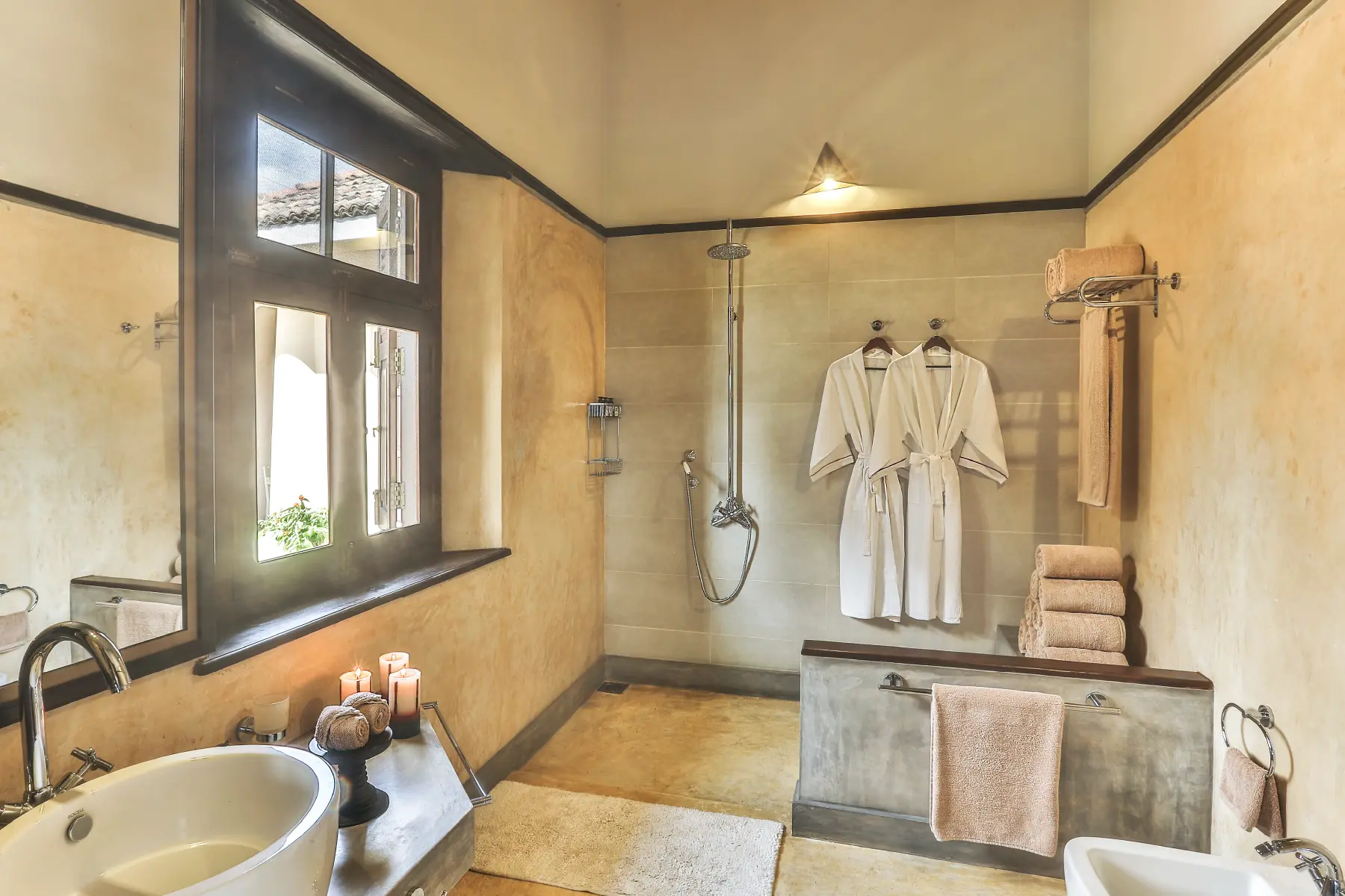 The Yellow Suite includes an open pantry (tea kitchen with direct access to the main lounge), king size four-poster bed, Bose sound system with iPod stand, flat screen TV, telephone, internet access, AC, mosquito net, mirrored glass windows (you can see outside, but nobody can see in), en-suite luxury bathroom.