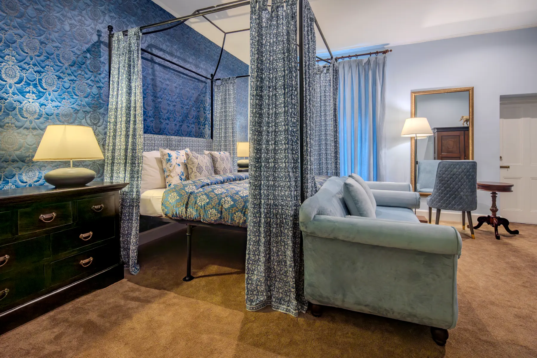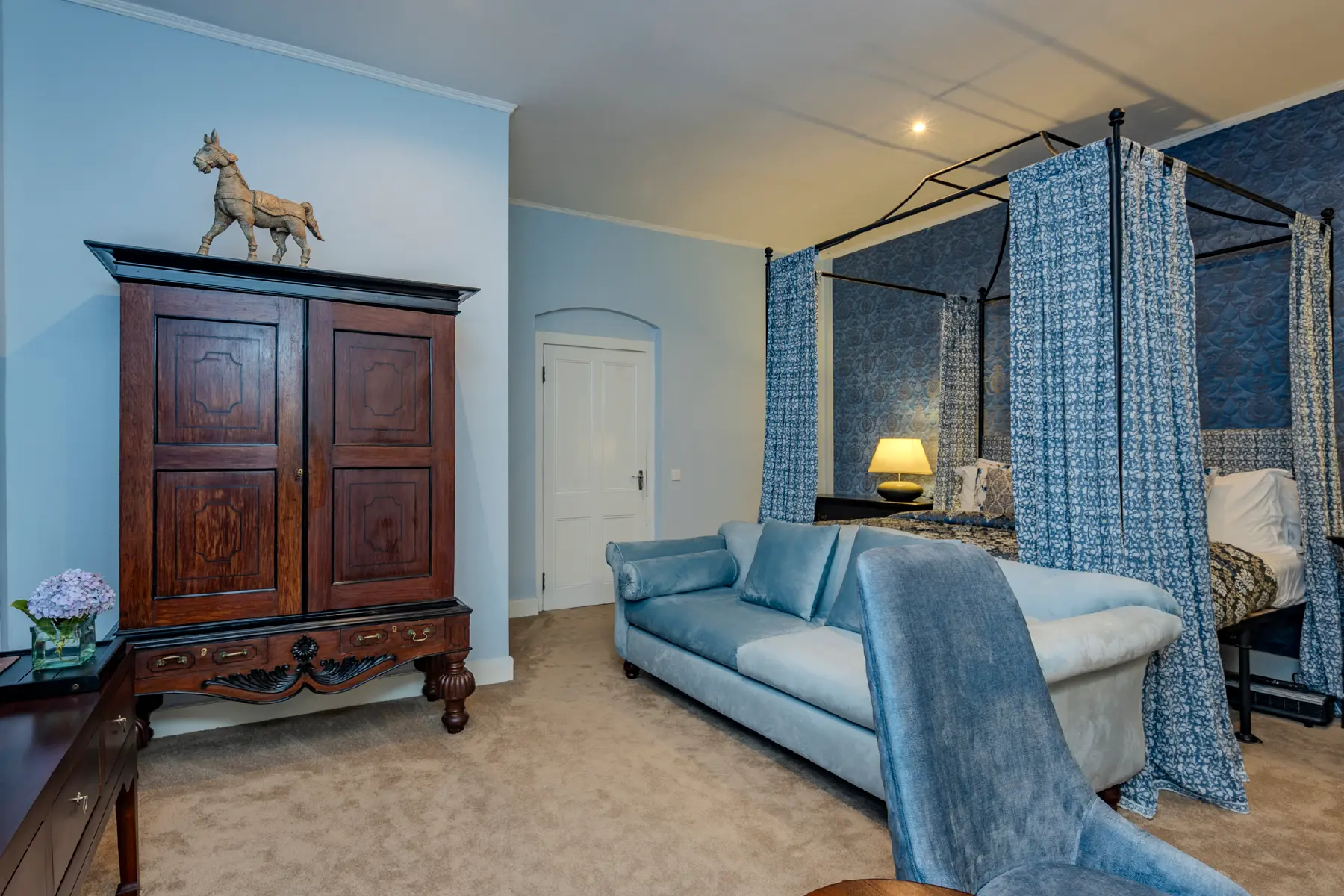The Natalma room named after racing legend Natalma is set just next door to the Queens room. It’s a large room that can easily accommodate a family of 3. Furnished tastefully with a Genuine Ebony four-poster bed, amazing works of art and an en suite bathroom the Natalma room has an aura of renewal and bonding.