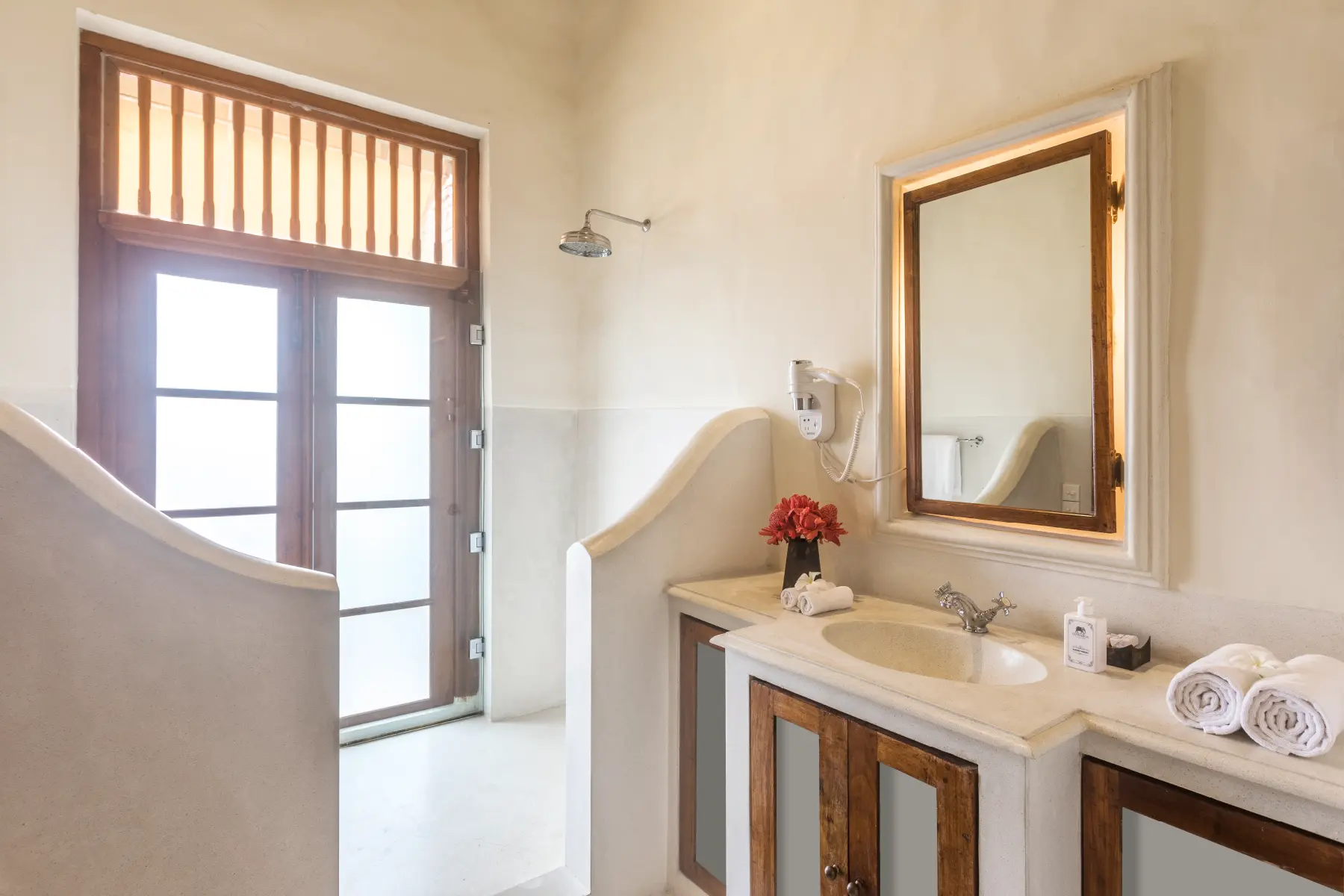 Separate outdoor bath and shower,