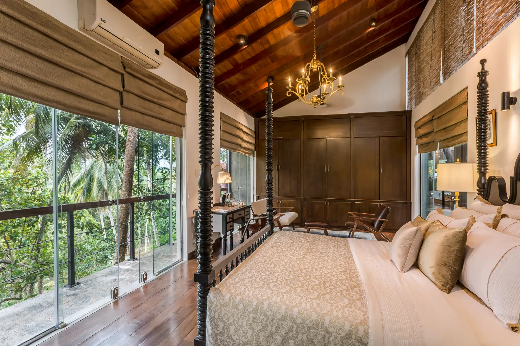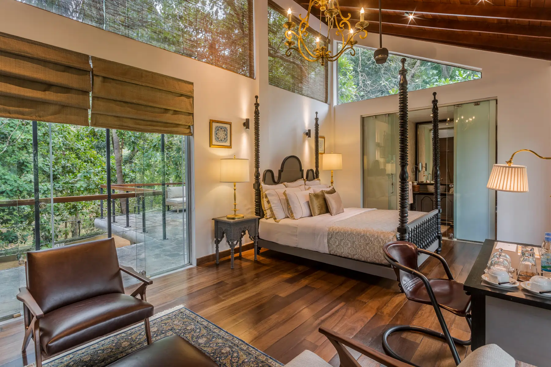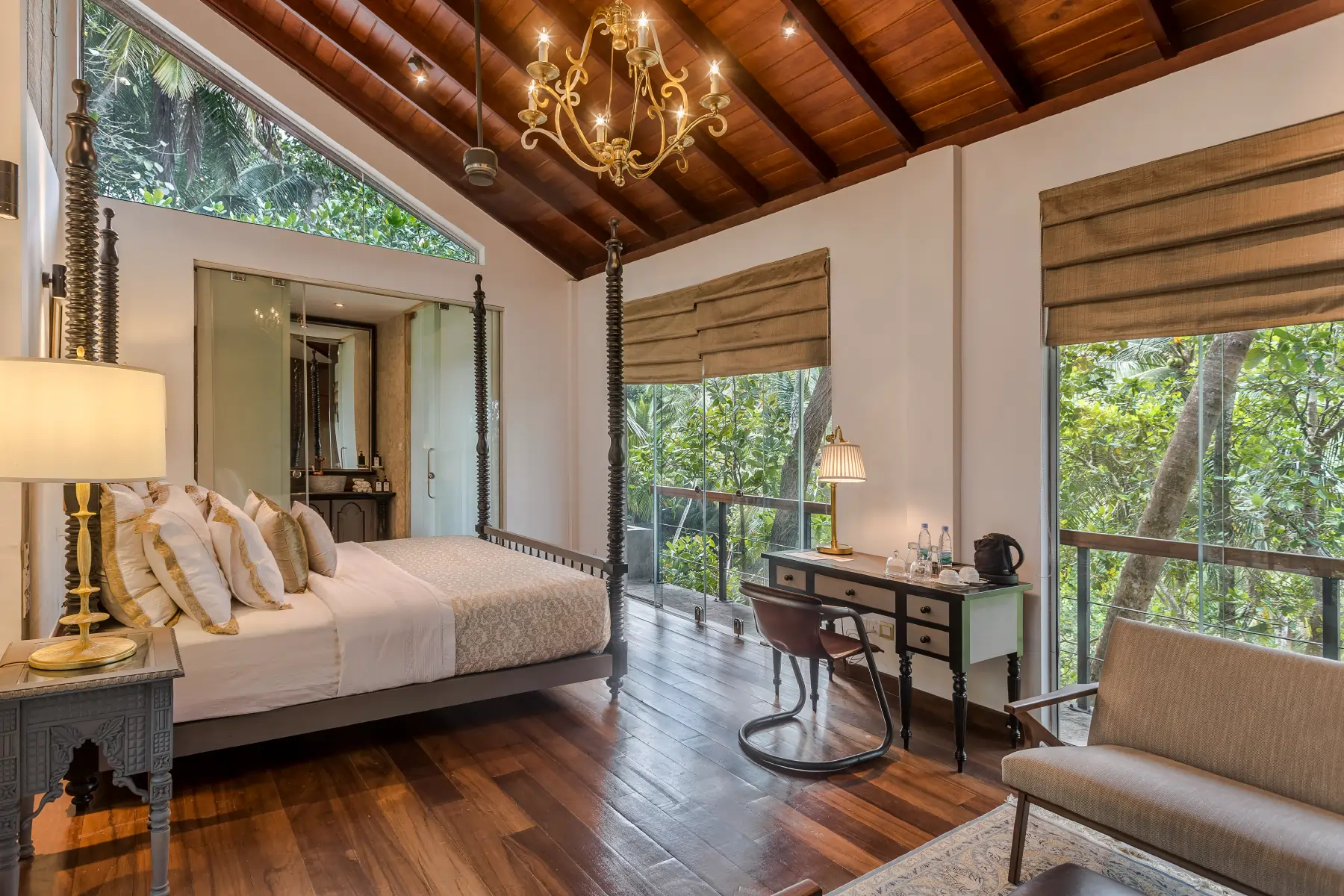 Inside, you'll find a luxurious king-sized bed, a cozy seating corner, and a charming slanted ceiling, adding warmth and character to the space. A vintage study desk provides the perfect nook for quiet reflection or leisurely reading.
