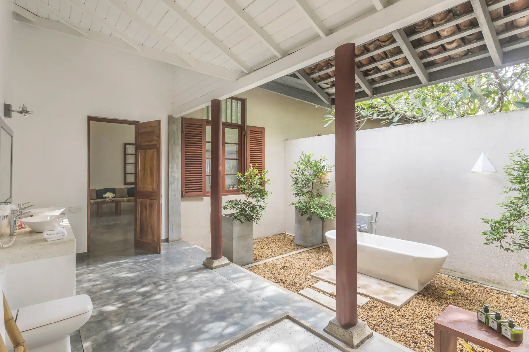 Olive Ridley One is a spacious suite featuring an outdoor shelter bathroom with a bathtub and shower. The suite has no ocean view and therefore has a lower rate.