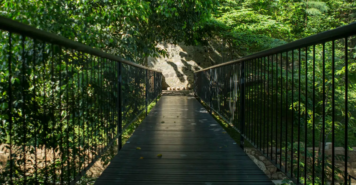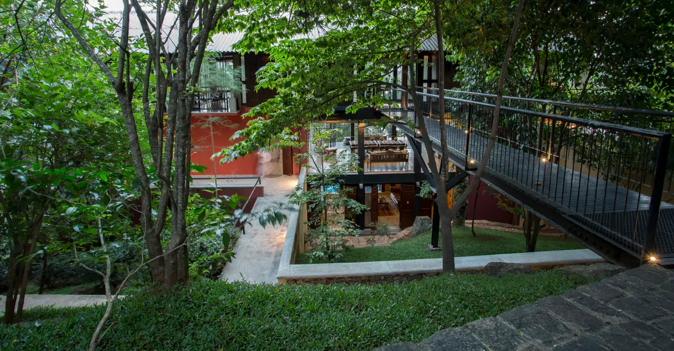 kilo meter and spread over an area of Six acres of Virgin forest, The Hermitage is positioned 2103 feet