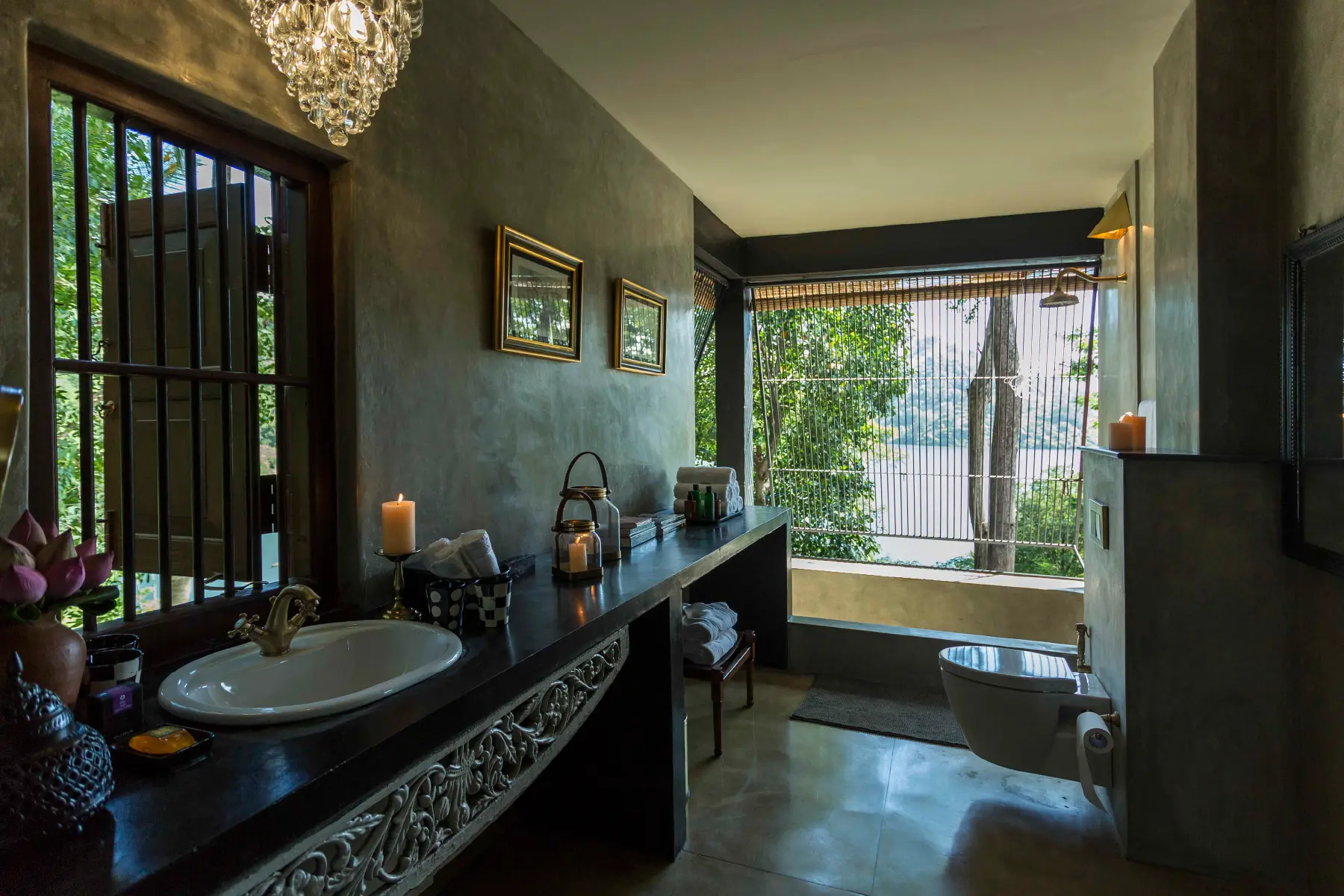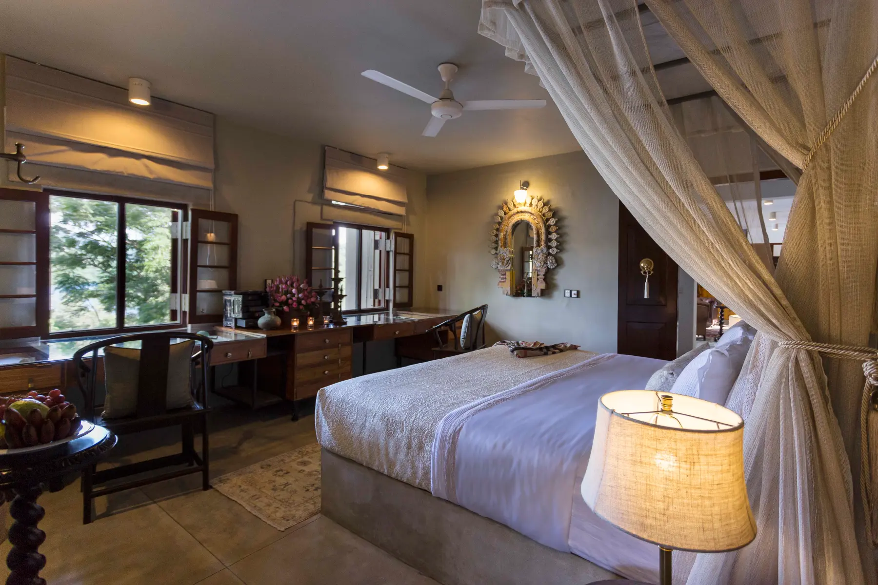 Vipassana meaning an insight into the true nature of reality, is a beautiful suite which transports guests into a world of unreality. Vipassana’s immediate neighbours are a family of wild parrots that live in a tree just outside the room. It has a large bedroom, a Dressing room and en-suite bathroom. Vipassana also has its own ‘Antique Library’ with extremely rare ancient coins and works of art made with Ivory used by kandyan royalty more than a century ago. It offers amazing views of the lake as well as the forest. The en-suite bathroom complete with two showers, one out door and one indoor and outsized bath, is decorated with genuine antique pieces and offers an amazing view of the Lake as well as the forest.